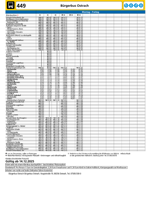 Veranstaltungskalender 202618. Dezember 2024 Fahrplan Bürgerbus Ostrach Fahrplan Bürgerbus Ostrach Anbei der Fahrplan Bürgerbus Ostrach, Stand: 14.12.2025 Fahrplan Bürgerbus Ostrach ähnliche BeiträgeVeranstaltungskalender 2026weiterlesenOnline Zählerstandserfassung 2025weiterlesenNeufassung des Landschaftsschutzgebietes „Altshausen – Fleischwangen – Königseggweiterlesen
