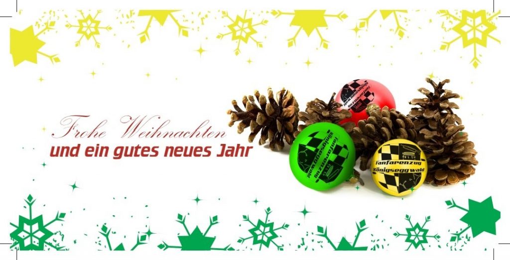 Wir wünschen allen frohe und entspannte Weihnachtstage, ein paar ruhige Stunden zum Durchatmen und einen guten Start in ein gesundes, glückliches und natürlich musikalisches neues Jahr. Wie jedes Jahr werden wir am 24.12. in Königseggwald unterwegs sein und mit Weihnachtlichen Liedern auf die Feiertage einstimmen.