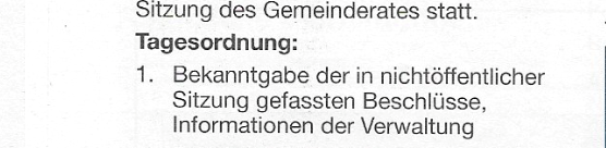 Zukünftig kann die Verwaltung, sofern es eine entsprechende Bekanntmachung gibt bzw. geben sollte, diese zur besseren Lesbarkeit im Protokoll bzw. im Verbandsanzeiger hervorheben und/oder markieren.